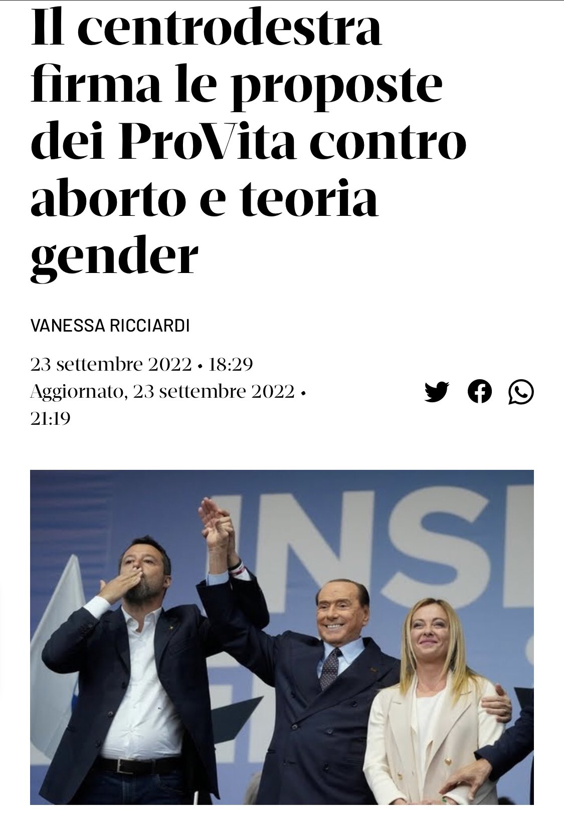 La modifica nello specifico è quella dellarticolo 1 del Codice. Il 13 ottobre 2022 Maurizio Gasparri ha presentato una proposta di modifica che rischia di ostacolare laborto. Questo dimostra lestremismo di questa destra.