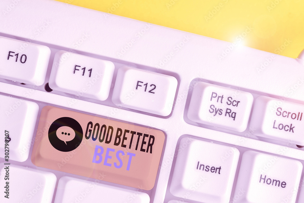 Conceptual Hand Writing Showing Good Better Best Concept Meaning Increase Quality Improvement Achievement Excellence White Pc Keyboard With Note Paper Above The White Background Foto De Stock Adobe Stock